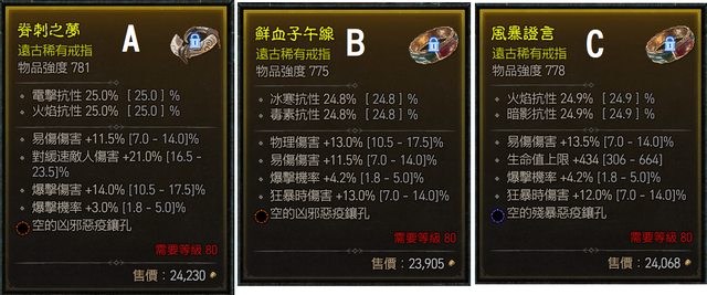 ●藍 易傷13.5% / 生命值上限 +434 / 爆率 4.2% / 狂暴時傷害 12.0%