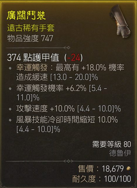 標題[競標] D4 S1 德魯伊手套 攻速/風暴冷卻/幸運