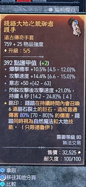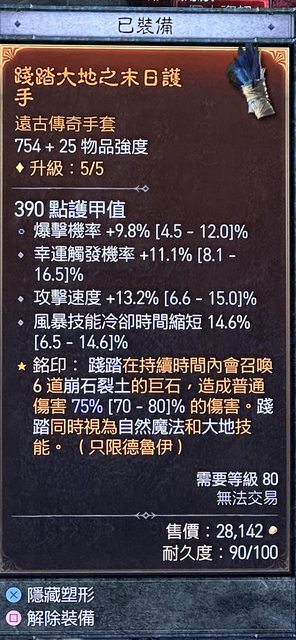P.S.賭不到生命、屏障、大地胸甲......