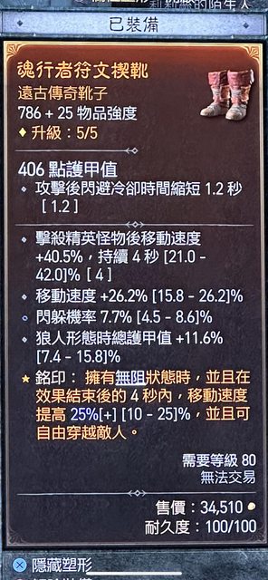 搭配鞋:魂行者精華與攻擊-閃避cd