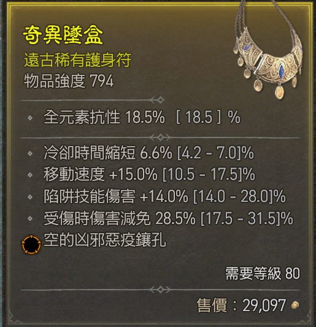 標題[競標] D4 S1 項鍊/移速/冷卻/受傷/陷阱
