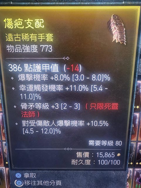 標題[競標] D4 S1 死靈 骨茅手套 頂爆率/頂幸運