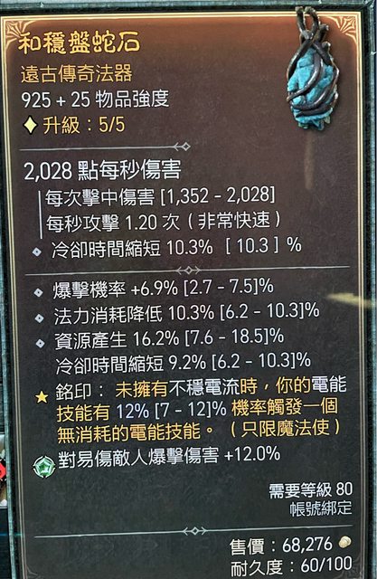 或換920以上法器(需滿爆率、其餘取二,越高越好:冷卻、減少法力消耗、資源生成、燃