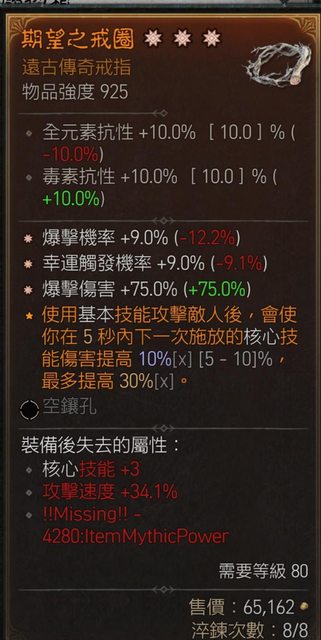 標題[競標] D4 S5 三太古 爆率爆傷幸運 戒指
