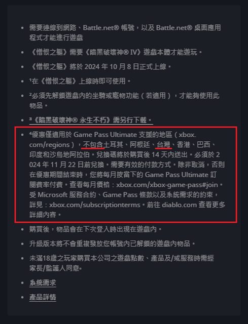 這邊居然寫到GAME PASS支援地區不包含台灣