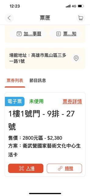 【區域/座位】:一樓一號門-9排-27號