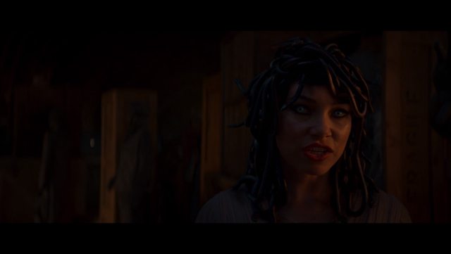 最後用一個他逃走的空景搭配配樂的轉換再加上梅杜莎脫帽