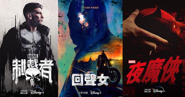 《制裁者》、《回聲女》與《夜魔俠》海報(Disney+提供)