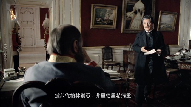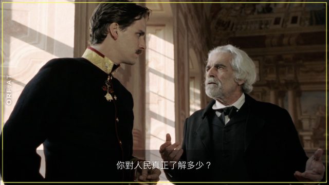 父皇 Franz Josef!這父皇由《遠離非洲》Klaus Maria Brandauer 演來城府極深表面慈祥先噓寒問暖、卸下兒子心房提高他孺慕期待再話鋒一轉、以父親的冷酷否定狠狠將兒子的愛打到無地自容!