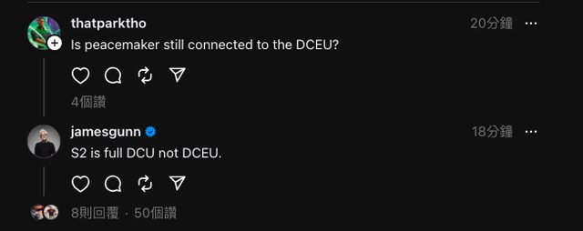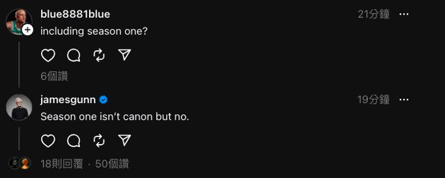 第一季究竟是歸類在過去的 DCEU、還是未來的 DCU,而他稍早在社群媒體回覆網友時,
