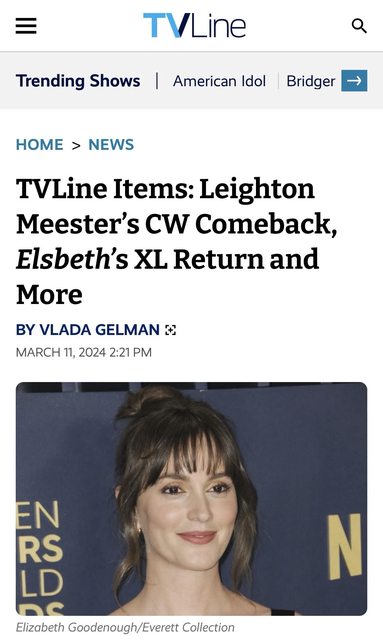 TVLine Items: Leighton Meester’s CW Comeback, Elsbeth’s XL Return and