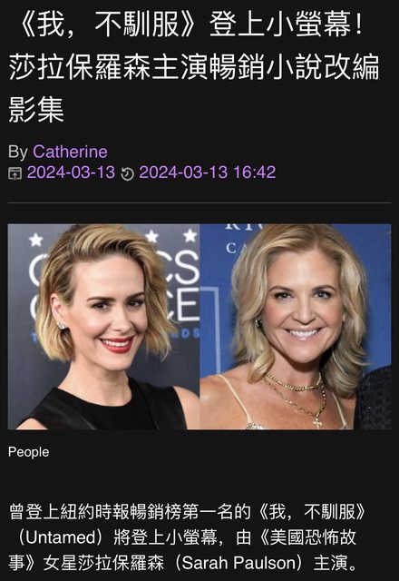 標題[新聞] 《我,不馴服》登小螢幕!莎拉保羅森主