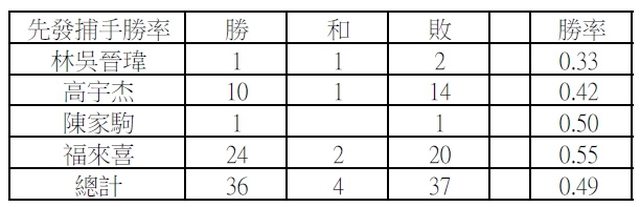 → yanilh: 捕手這數據跟固定搭配的先發投手也有關,1號捕手數據比較 08/18 11:39