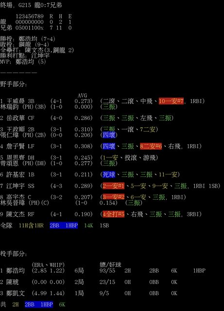 標題[情報] G215 龍0:7兄弟 全場數據box