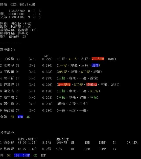 標題[情報] G224 獅1:3兄弟 全場數據box