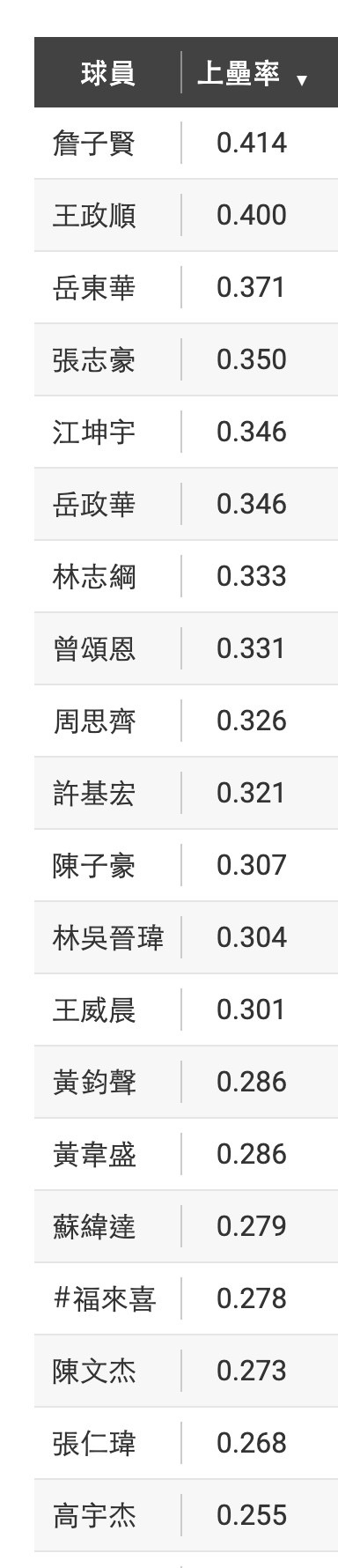 → atko200: 雖然只看上壘率不準,但參考一下,24常駐一棒?….岳哥 09/10 20:52