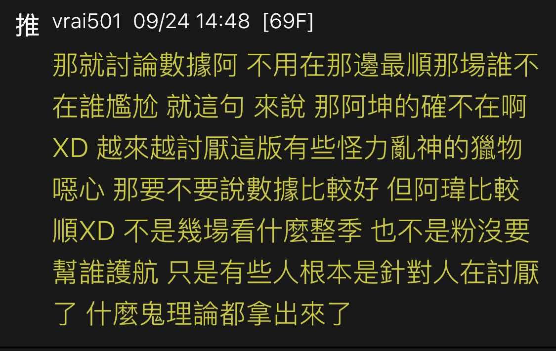 → vrai501: 不是幾場看什麼整季 也不是粉沒要幫誰護航 09/24 14:51