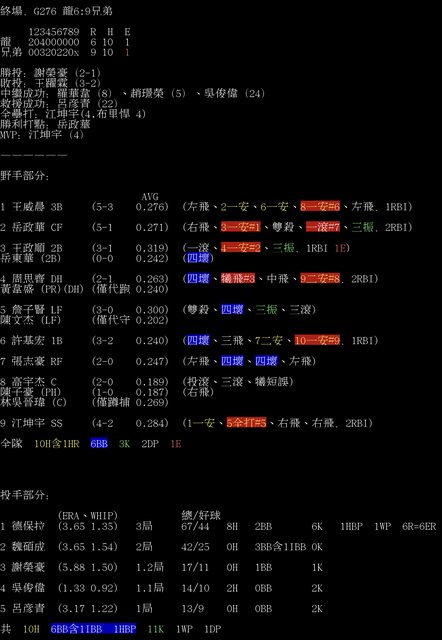 標題[情報] G276 龍6:9兄弟 全場數據box