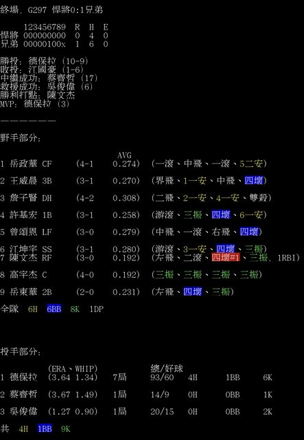 標題[情報] G297 悍將0:1兄弟 全場數據box