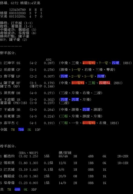 標題[情報] G172 桃猿3:4兄弟 全場數據box