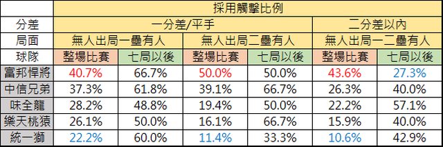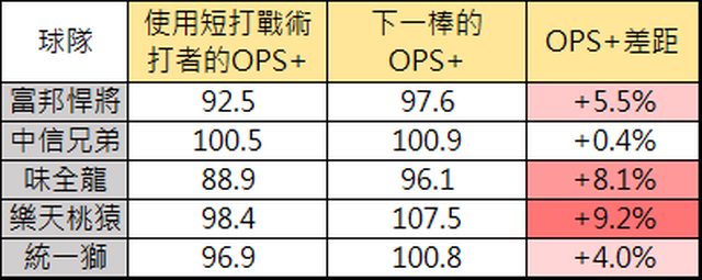 將會使用該文的結論去分析各球隊使用短打的時機。