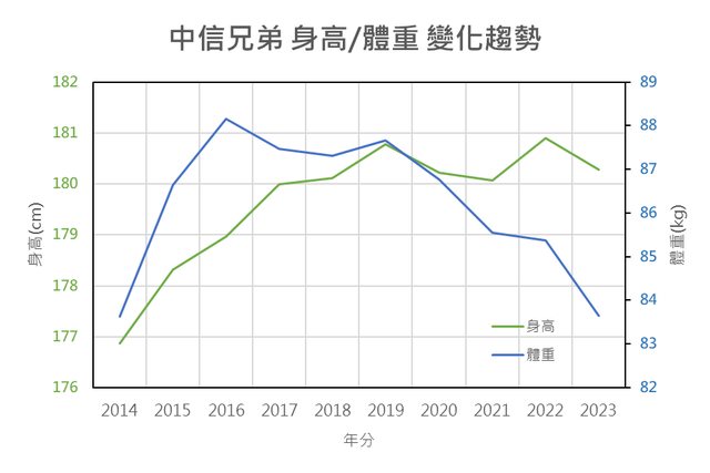 中信兄弟 近年來身高有逐漸提高的趨勢