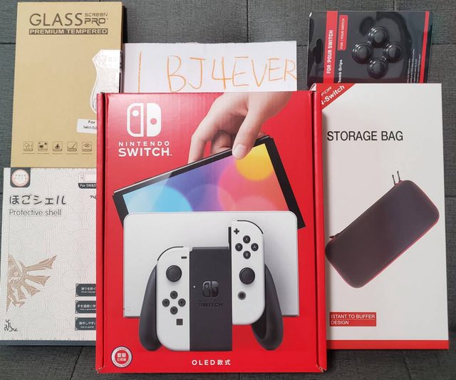 ★【物品名稱】:oled白色主機+手拿包+玻璃保護貼+搖桿帽+王國之淚配件全新