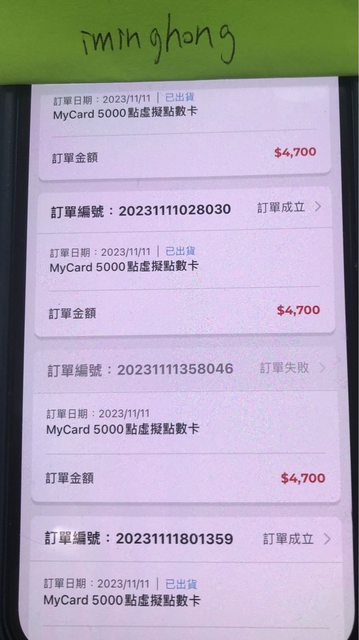 ★【物品名稱】:mycard 5000點 *4
