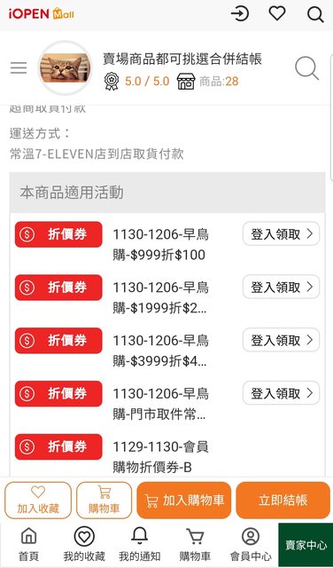 使用7-11 OP會員結帳前領取全站折價券(綠框處) (折價券使用期限11/30至12/06)