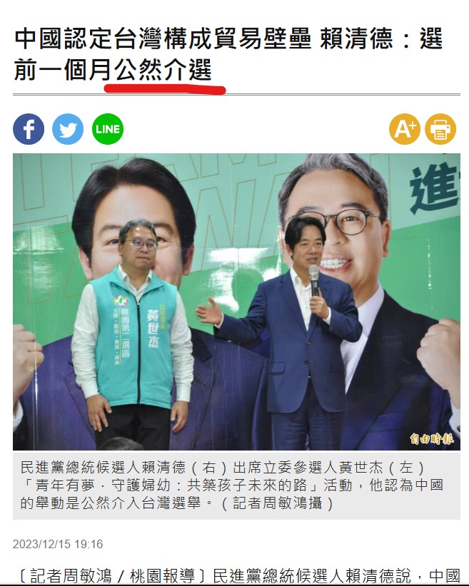 → doig: 賴沒招了,昨天出來說一句中國介選而已 36.225.115.235 12/16 09:04