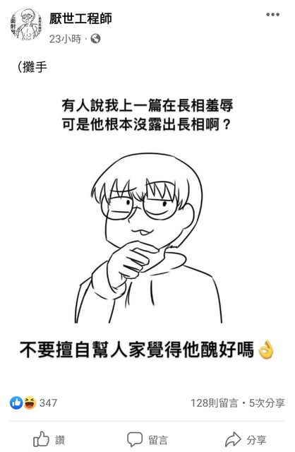 「厭世工程師」不是隨便一個阿貓阿狗喔,是蔡英文臉書相簿曾經親自貼過他畫的數張政