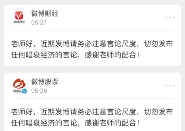各自領域的網紅,警告「近期發博請務必注意言論尺度,切勿發布任何唱衰經濟的言論」