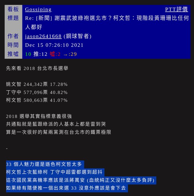 政黑這裡有個毛病 看問題跟八卦一樣都帶有很強的意識型態 只是顏色不一樣罷了