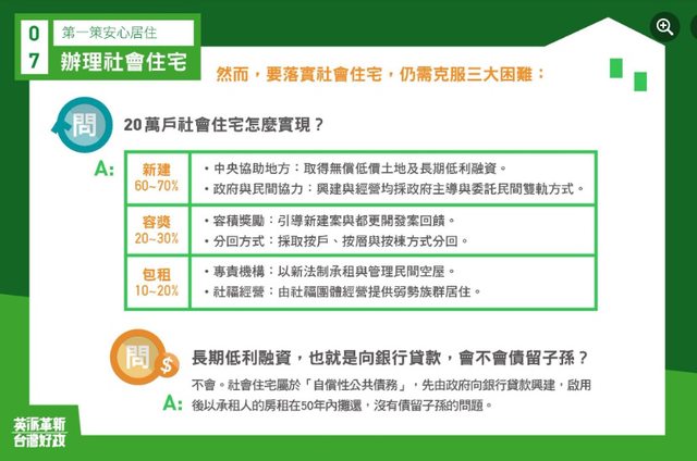 都是包租代管和興建公宅,兩者加起來盼達到20萬戶目標,其中,政府直接興建12萬戶、