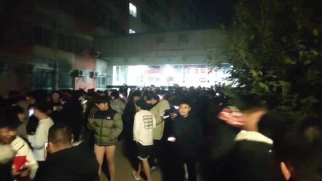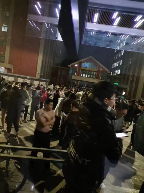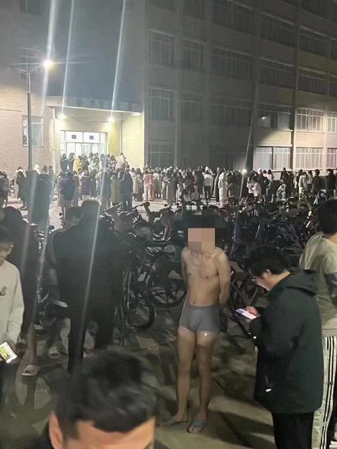 西安有高校學生深夜來不及穿衣服跑到外面。(網絡圖)