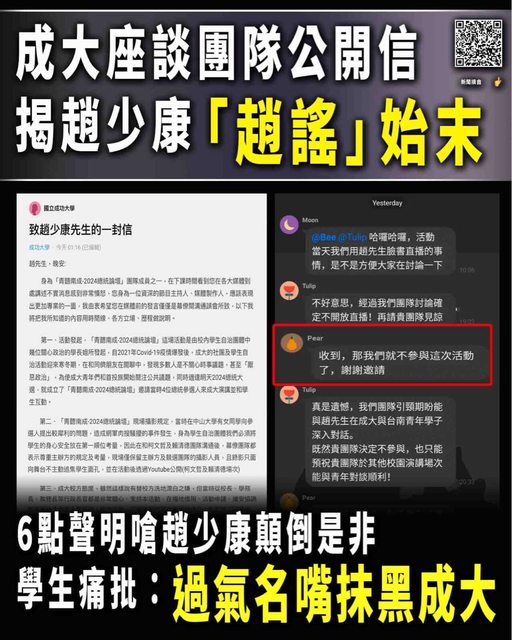 → ben811018: 學生會都出來重重打臉了 趙還在硬拗 42.78.211.0 12/19 15:50