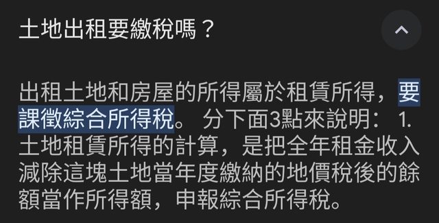 噓 ddg1802: 地價稅跟租金收入是兩回事喔,你租金收入 122.147.31.88 12/20 00:47
