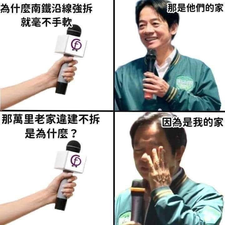 → waynecode: 賴清德拆別人家就不管居住權 60.250.65.252 12/20 17:51
