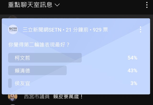 → pivotalHarry: 奇怪一直洗1000人三立網路民調 怎 124.218.1.170 12/20 21:36