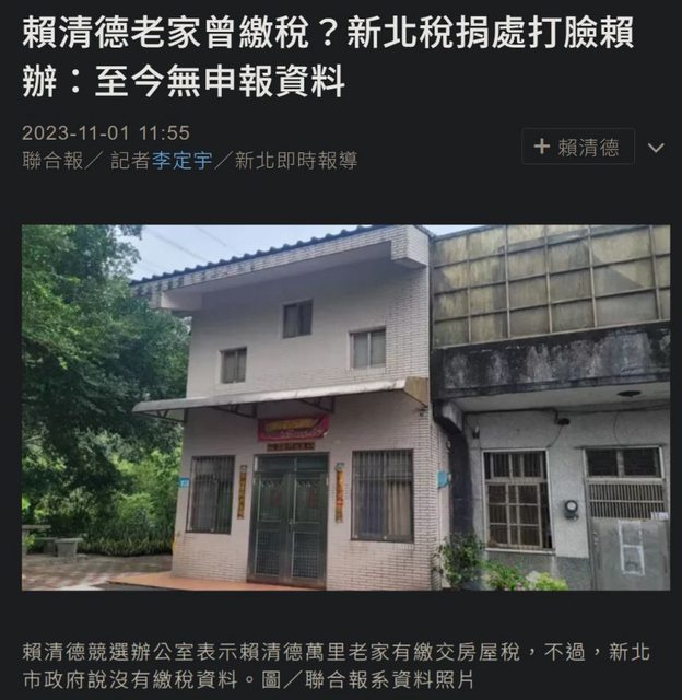 : 侯友宜質疑賴清德違建