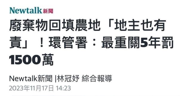 推 jess730612: 廢棄物清理法是公訴罪 123.240.57.3 12/22 12:43