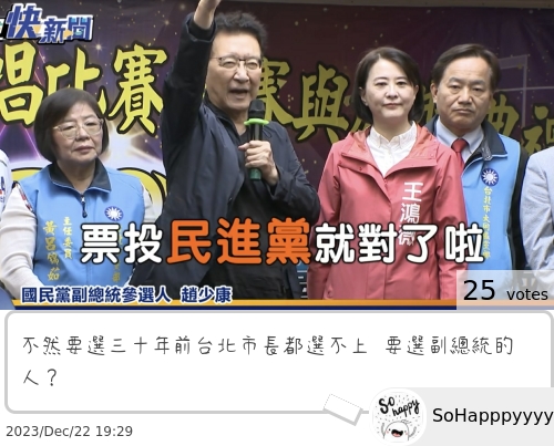 推 shwkz: 趙少康 第三輪 又更強了 左右逢源 101.0.236.185 12/22 20:24