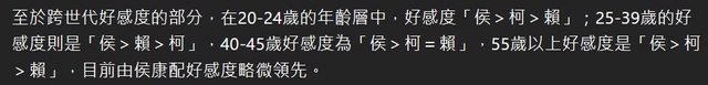 25-45 還有55以上的好感度都屌打賴柯耶