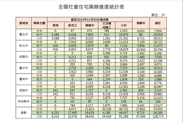 已完工+施工中待開工,這就跟中央考核社宅進度一致。