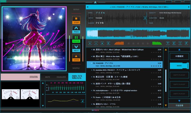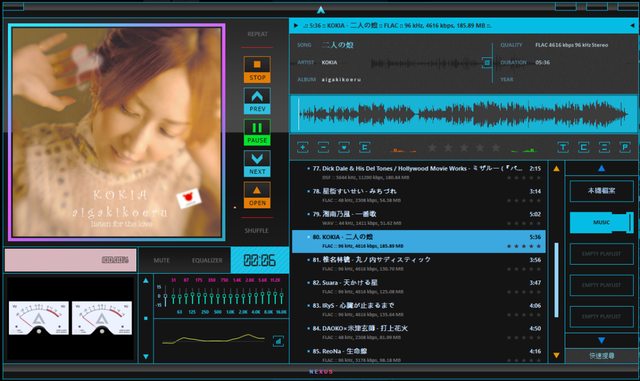 設備:PC->AudioQuest JitterBug->FiiO K7(連結12V線性電源)
