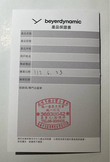 3.購買時間、地點:2023年06月23日台南品味音響購買