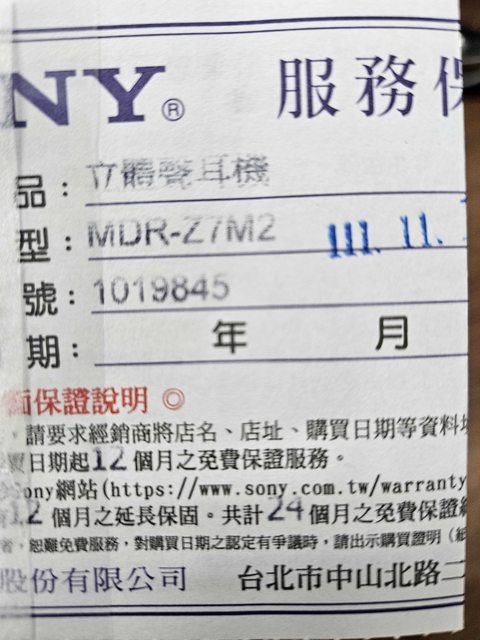 1.產品型號:Sony Z7M2 耳罩式耳機