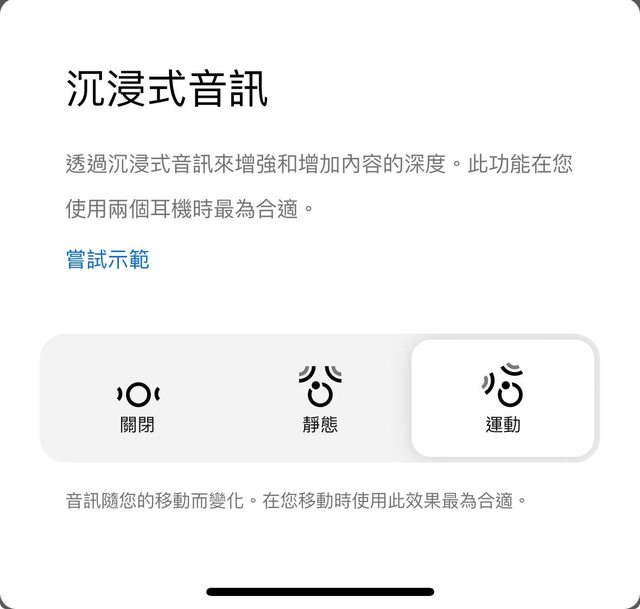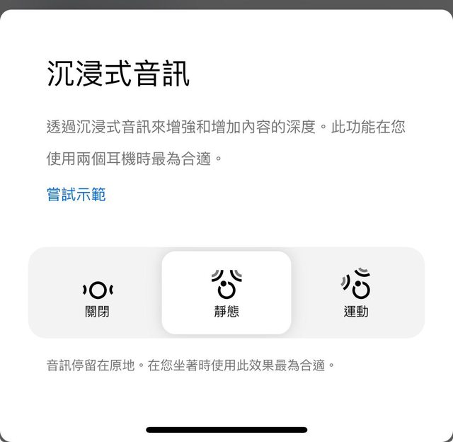 沉浸式音訊裡面的設定: 靜態 / 運動