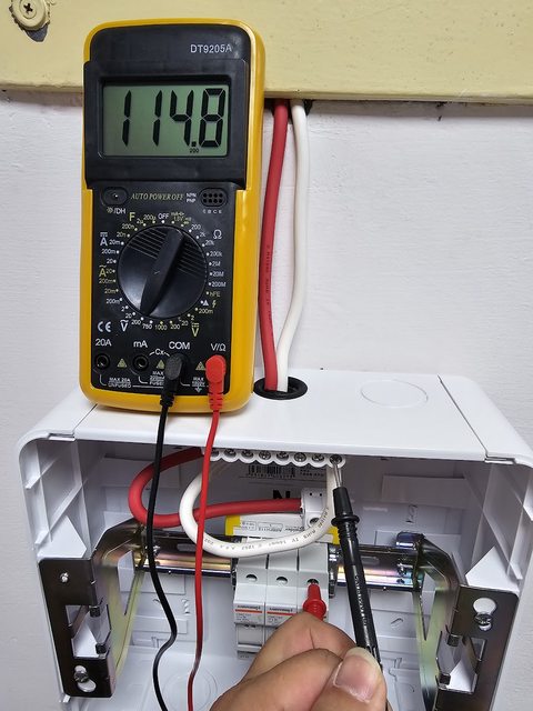 然後一樣用驗電筆和三用電表測水火和電壓都正常