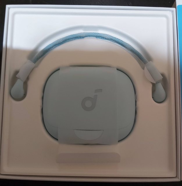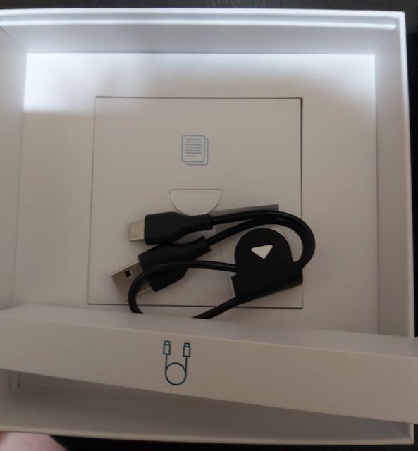 開盒後,充電倉本體,配件運動掛繩,充電線USB-A TO USB-C